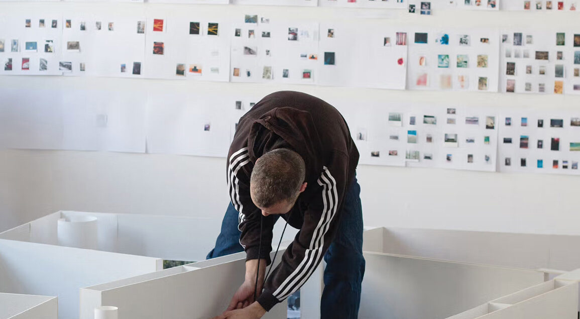 Abb. Tillmans in Prinzessinnenstrasse 2, 10969 Berlin, aus Wolfgang Tillmans and his archive of 1:10 exhibition mock-ups, Emmanuel Olunkwa, PIN-UP #32 The Architecture of Art, Spring/Summer 2022, https://www.tillmans.co.uk/texts.