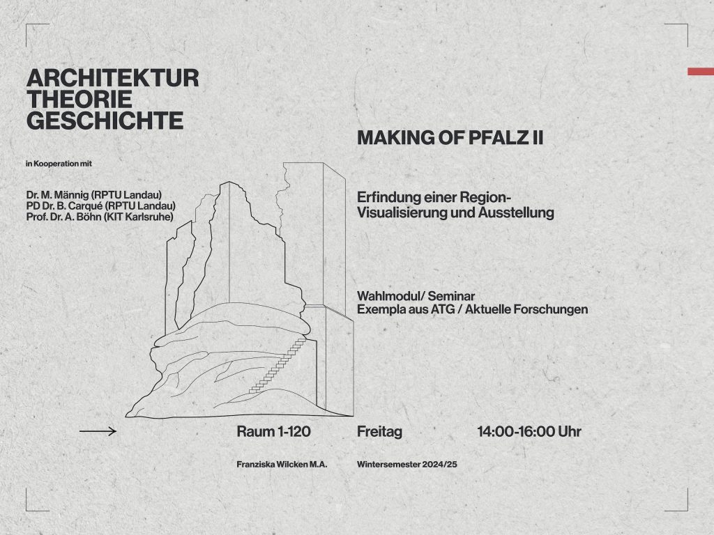 Regionen liefern geographisch und kulturell einen Kontext für Architektur. Welche Elemente machen eine Gegend zu einer Region? Gibt es solche für die Pfalz und welches sind ihre prägenden Merkmale? Im Sinne eines „Kritischen Regionalismus“ (K. Frampton) begibt sich das interdisziplinär strukturierte Seminar auf die Suche nach der Entstehung der „Pfalz“.