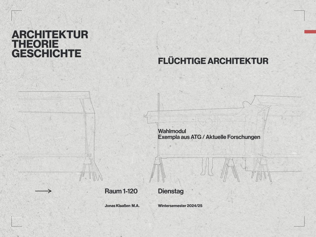 Flüchtige Architektur definiert sich durch nicht-hierarchische, vielfältige und ergebnisoffene Verbindungen als forschende und emanzipatorische Praxis. Wir untersuchen, inwieweit temporäre Architektur etablierte Vorstellungen von Ort und Zeit hinterfragt und kulturelle sowie inklusive Bewegungen fördert.