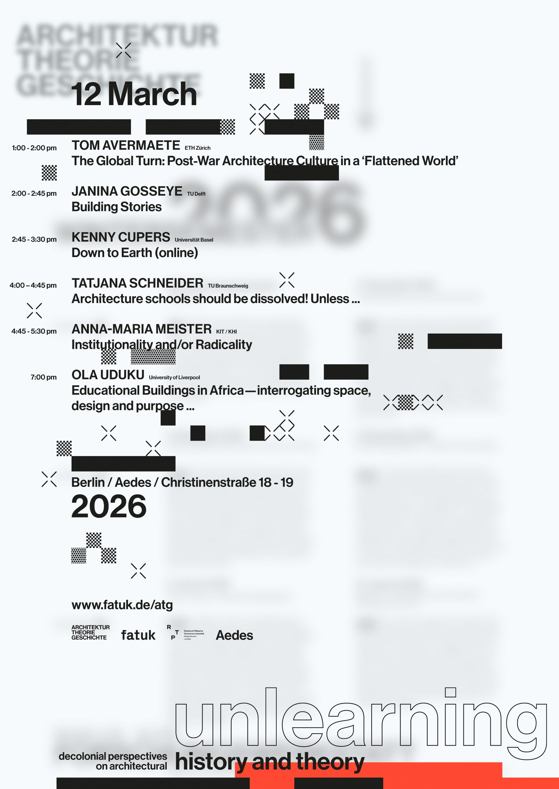 Alongside the workshop, we are holding in cooperation with Aedes a series of public lectures on Thursday, 12 March, from 1–8 p.m.